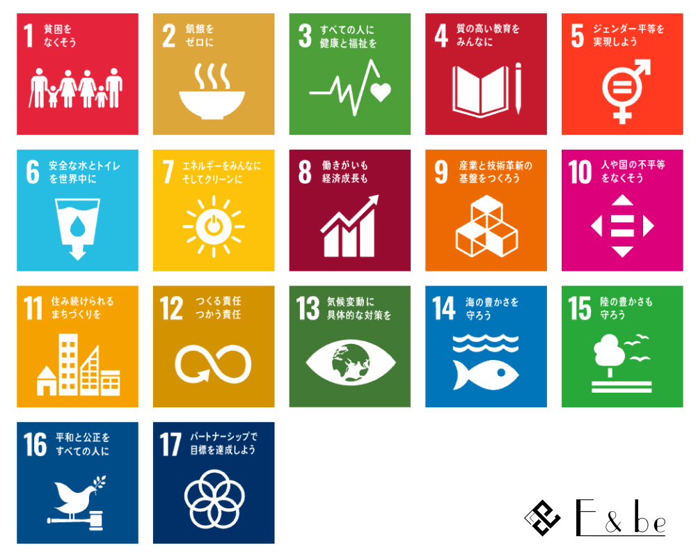 E&beはSDGs(Sustainable Development Goals)に賛同し、2030年までに持続可能でよりよい世界を目指す国際目標に貢献いたします。